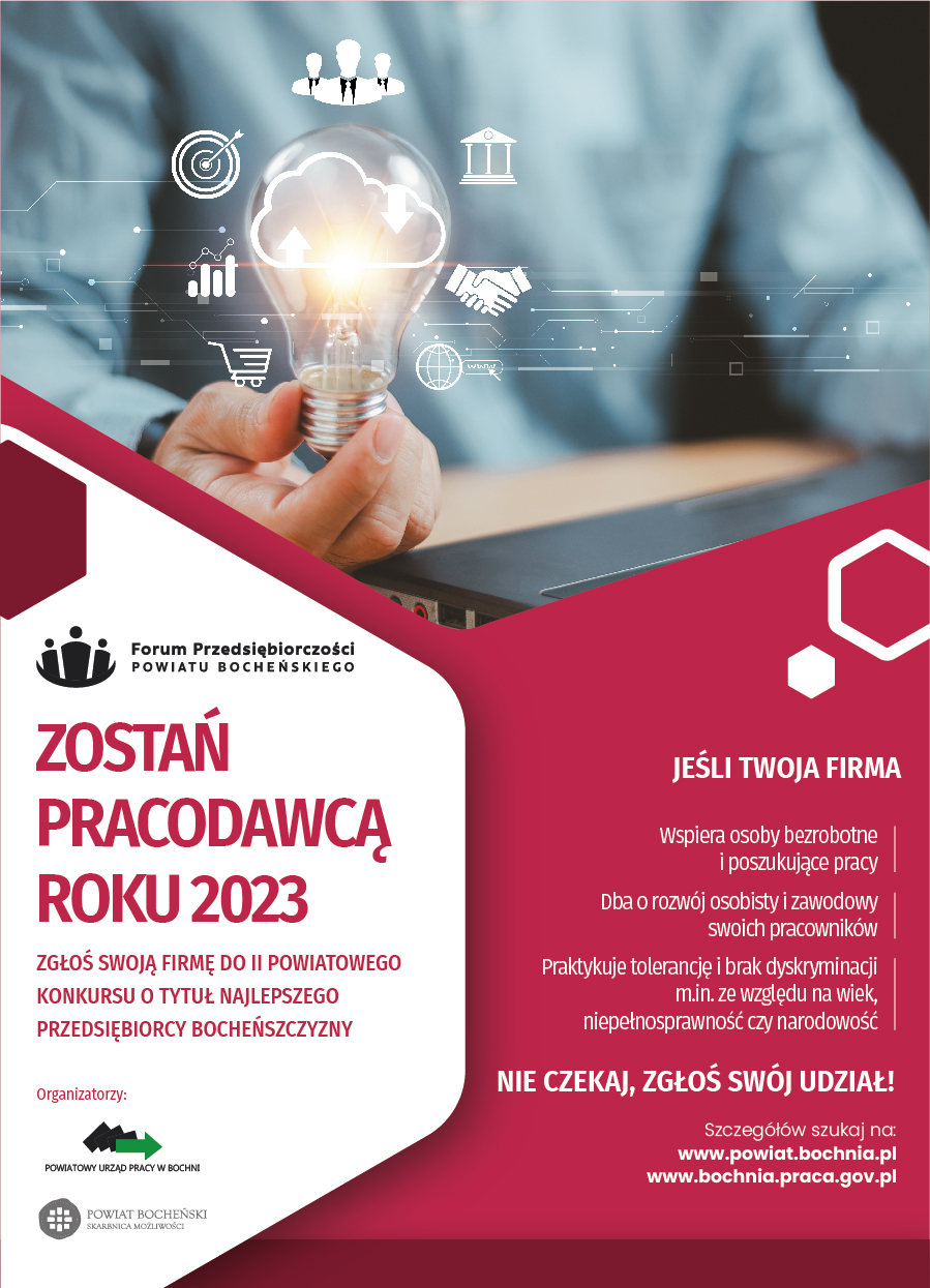 rozpoczynamy II edycję Konkursu dla przedsiębiorców: „Pracodawca Roku 2023 Powiatu Bocheńskiego".